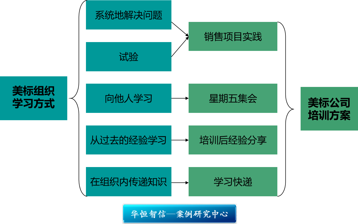 结合以上五种组织学习的方式,美标设计了不同的培训方式与沟通形式,以获得最佳的学习效果。
