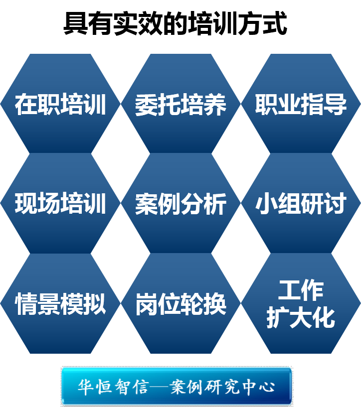 在培训方式、方法上,企业本着学以致用,按需施教,讲求实效的原则,呈多元化的发展趋势。在培训工作组织机构方面,企业纷纷设定专人负责培训,设立专门的培训中心、部门甚至企业大学来开展培训工作,从组织上有力保证培训的实施;在培训需求分析方面,企业越来越关注挖掘真实的培训需求,将培训资源用在刀刃上;在培训方式方面,结合成人教育的特点,创新了很多具有实效的教学方法,包括在职培训、委托培养、职业指导、现场培训、案例分析、小组研讨、情景模拟、岗位轮换、工作扩大化等;