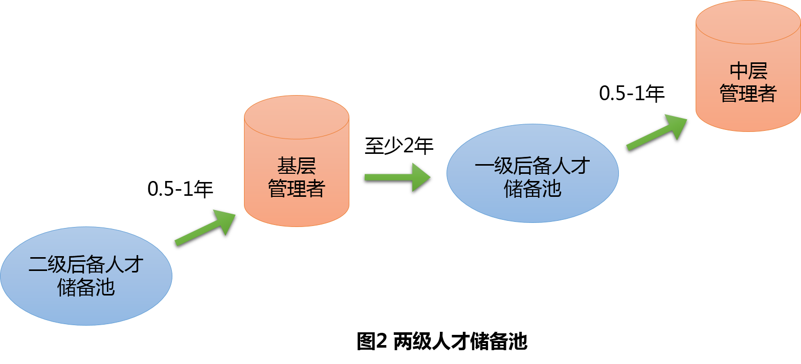 通过人才测评与综合评估选拔来的能力与素质兼优的基层业务人员可进入“二级后备人才储备池”。二级后备人才的数量会根据每年基层管理者的基数或者公司人才规划而定,通常为储备岗位的10%~15%.