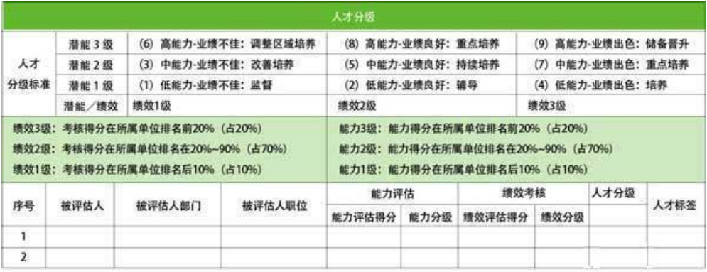公司每年都会对基层管理者以上人员进行人才盘点分级,形成人才“九宫格”,位于8~9格的基层管理者,有机会进入“一级后备人才储备池”。