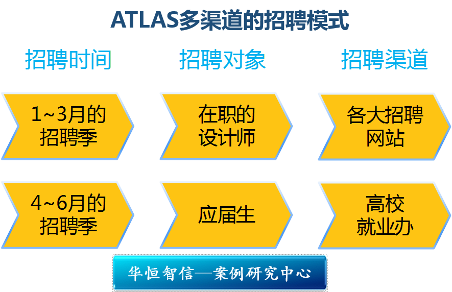 关于今年的招聘工作,魏智博介绍,ATLAS一直尝试建立多渠道模式。在2012年上半年的招聘中,1~3月的招聘季,主要针对在职的设计师。每年春节前后,很多人合同到期,会考虑换新的工作环境。ATLAS通过与主要的设计门户网站、各大招聘网站合作发布招聘信息,并请相关猎头公司提供部分资深的应聘者。在4~6月份的招聘季中,主要是针对应届生,参加重点高校的招聘会,与重点高校就业办联系,请他们推荐优秀应届毕业生。除了这些途径之外,ATLAS还建立高端人才信息网络,定期了解人才的变化。这样就可以做到人才招聘面与点的结合。