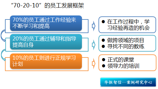 戴尔的学习与发展都是基于“70-20-10”的原则制定的。另外,该原则还应用到戴尔的绩效办理、招聘等其他人力资源发展的领域当中。