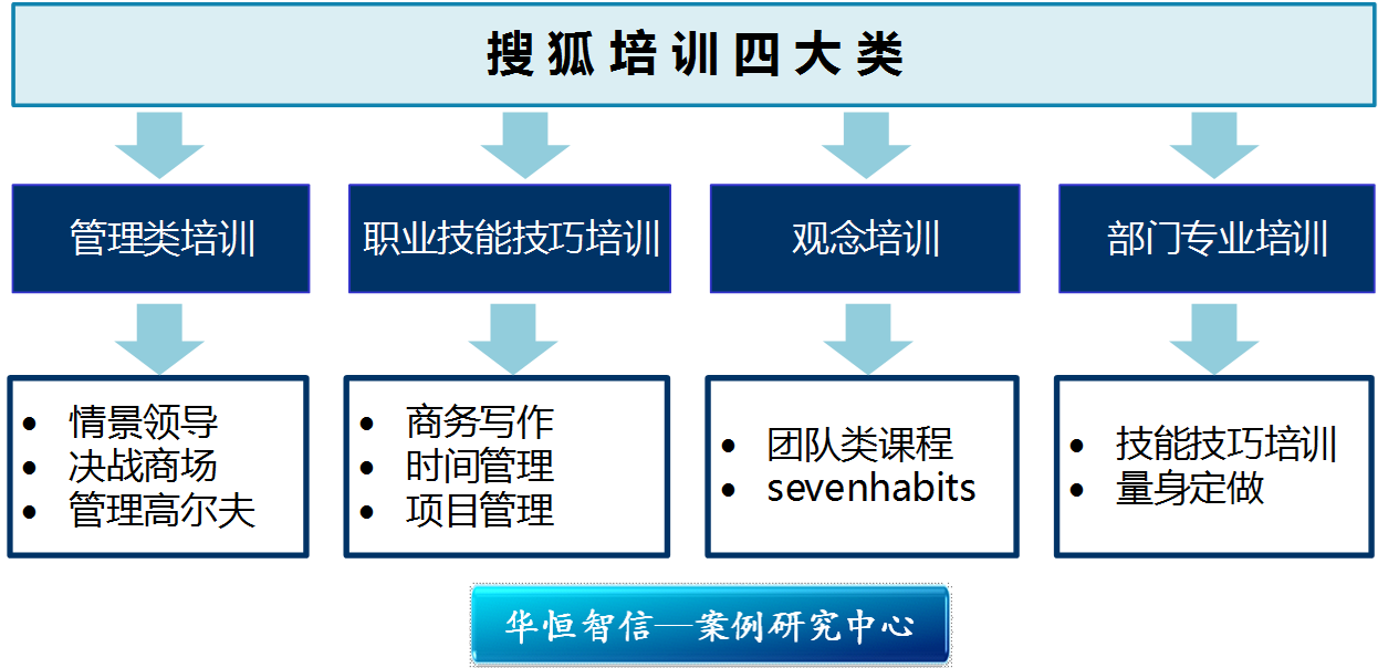 一、第一步:首先是定位。从培训在企业中的价值和作用来看,企业究竟是把培训作为留人的策略,还是作为雇主口碑和吸引人才的手段?设置培训这个岗位,是为了解决企业内部存在的瓶颈,通过有针对性的培训来解决问题,还是基于企业战略发展对人才的需求?培训对于这个企业来说,只是一种福利还是搭建人才梯队的有效手段?对于搜狐,培训的是增长员工技能,提高凝聚力。