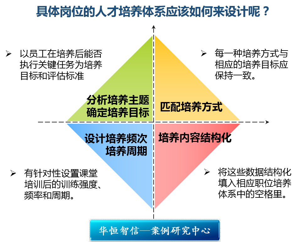 人才培养包括多种方式,并且一项能力的培养与提升需要多种培养方式的给合。那么,具体岗位的人才培养体系应该如何来设计呢?