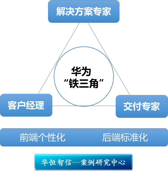 所谓“铁三角”,就是真正面向市场端的是客户经理、解决方案专家、交付专家,前端针对某一个客户,我是依据这三类人来做决策。
