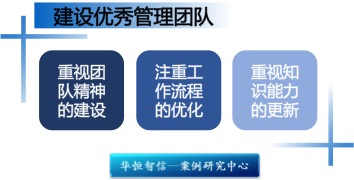 最后,要重视团队成员知识能力的更新。一个优秀团队保持先进的根本在于不断的学习和自我更新,正如华为所做的,提倡“血洗”型人才,要充分吸收优秀而值得借鉴的管理经验,将其复制和融入到自身的管理体系中。将整个企业管理团队建设成学习型的组织。只有这样才能不断适应经济社会发展的需求,为企业的发展提供助力。