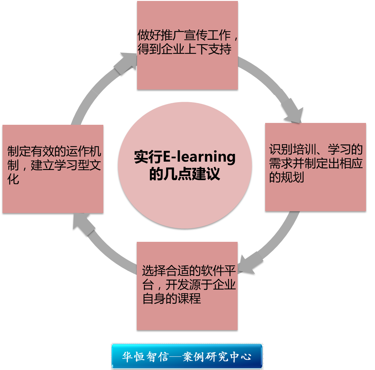 E-learning是随着企业间人才竞争加剧以及互联网的兴起而诞生的新型培训方式和学习方式。相对于其他的学习模式来说,它充分尊重个性需求,更容易实现一对一的学与教之间交流。目前在我国不少企业也相继建立了E-learning系统。但是,我国大多数企业仍采取的是传统的培训,E-learning在我国仍处于起步阶段。通过总结企业在实行E-learning时的成功经验以及失败教训,华恒智信对提出了如下几点建议: