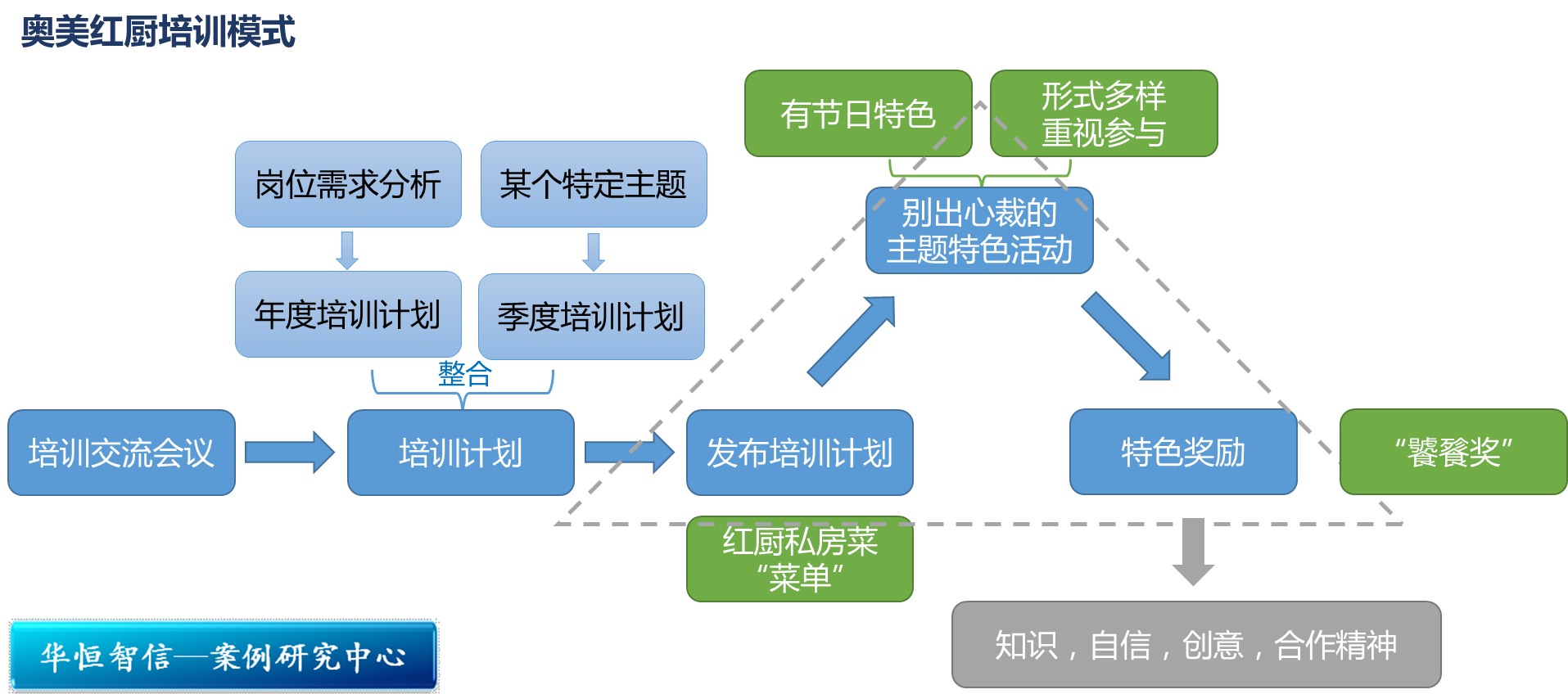 奥美上海培训委员会主席张曼华女士介绍说,考虑到公司行业特色和本土化要求,为了更好地实现培训效果,她组织公司各个部门的负责人一起,专门讨论该以什么样的方式进行培训。最后形成了一套红厨培训系统。