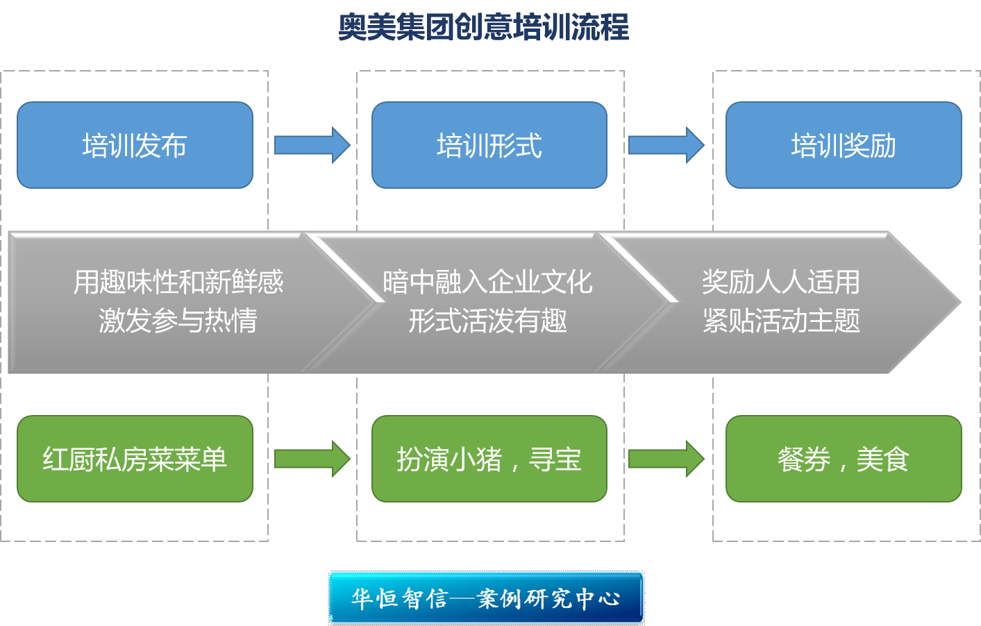 奥美一直都很重视内部员工的培训,而创意是广告、市场营销行业的根本所在。作为市场传播界在创意上的领头公司,奥美每时每刻都把创意融入生活和工作中,培训当然也不例外。