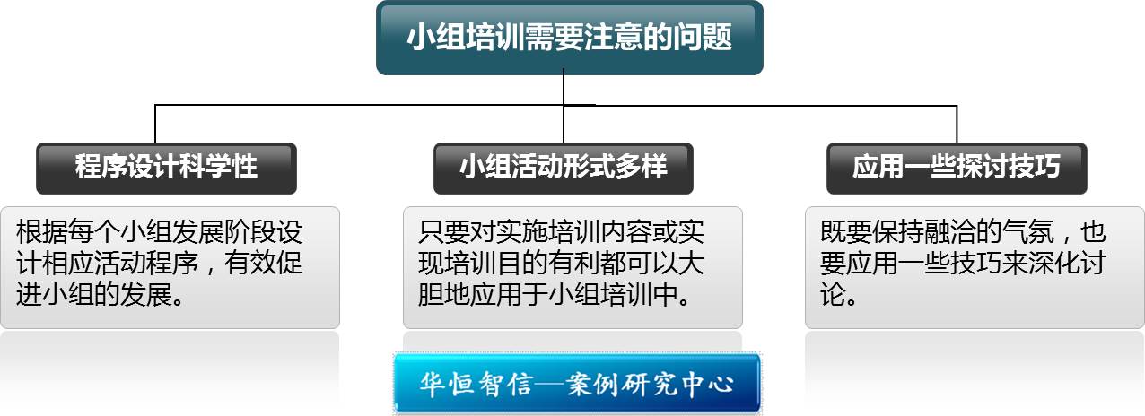 其次,充分发挥小组培训的体验、互动、沟通特性。之所以存在培训人数有限、培训成本较大、培训对象有具体要求等缺陷的小组培训能够依然被企业培训所运用,正是因为其在人员培训上具备体验、互动、沟通的优势,而这些优势正是其他的传统培训无法达到的,对于特定的培训目标,能更有成效。因此,企业运用小组培训形式时,一定要充分发挥小组培训的优势。结合小组培训的具体形式,我们提出以下几点要求: