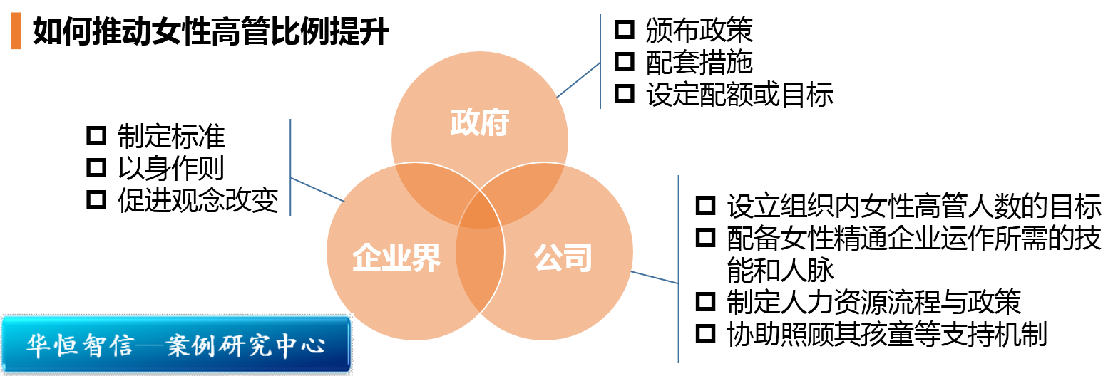 推动女性高管比例提升需要政府、企业界及公司三方共同行动。