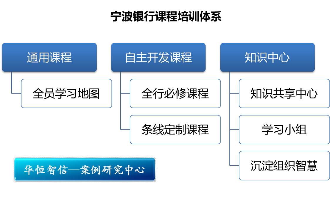 1.引进通用课程。宁波银行在六年时间内,累计购买了127门通用课程。2009年,宁波银行与北京一家公司做了一个全员学习地图的项目,针对经理人引入了启航、速航、远航、领航的学习课程。