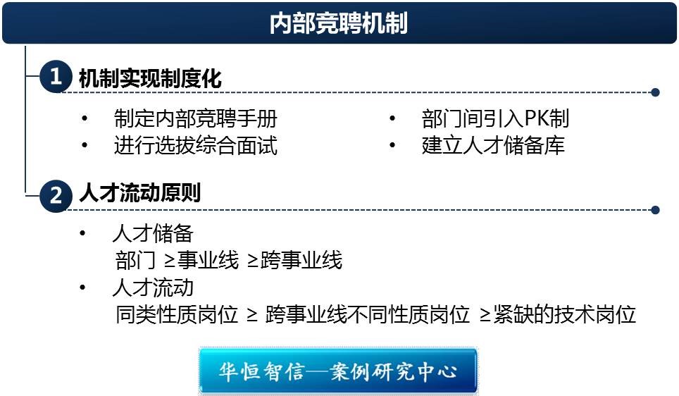 要想留住人才,就要建立公平、公正、公开的人才流动机制,设立内部竞聘制度,以笔试加面试的方式逐层提拔,给予员工公平竞争的平台和晋升的渠道。并完善相应的配套机制,逐层建立人才储备库,严格执行‘规章化’制度。只有拓宽发展空间,创造平等的机会,才能让员工与公司齐肩并进,共同发展。