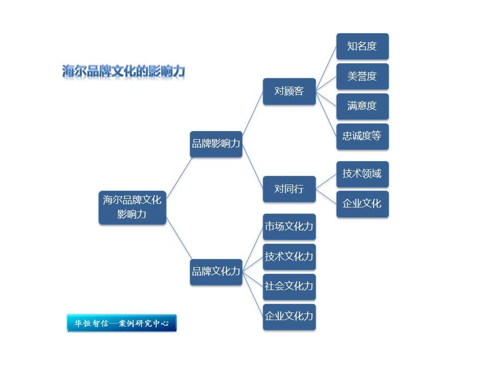一是市场文化力。海尔“市场链”的核心是“人单合一,速决速胜”,它充分体现了海尔的市场观和服务观。海尔品牌文化的关键在于,紧贴市场,创造市场,引导市场,领先市场;市场不变的法则是永远在变,海尔就是根据永远在变的市场需求,不断提高适应速度、影响能力和创新水平。