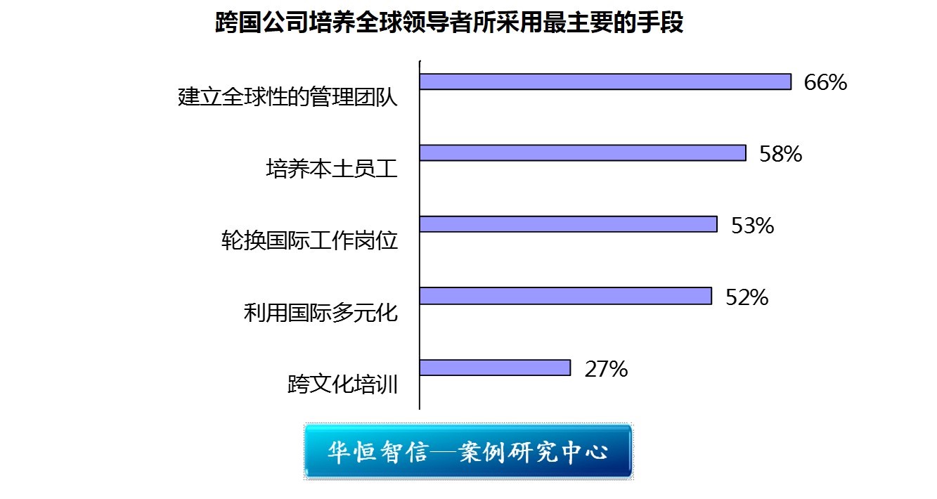 胜任的国际经理将成为全球商业竞争中成功最关键的因素,培养了解自己企业文化又有能力开拓国际市场的领导者成为不但是中国乃至世界跨国公司领导者最重要任务之一。Conferen GE Board在另一个研究中,采访的财富1000中400家公司的GEs,跨国公司的老总们普遍反映选择和培养企业未来领导者是企业单个最紧迫的任务。现在跨国公司培养全球领导者所采用最主要的手段为: