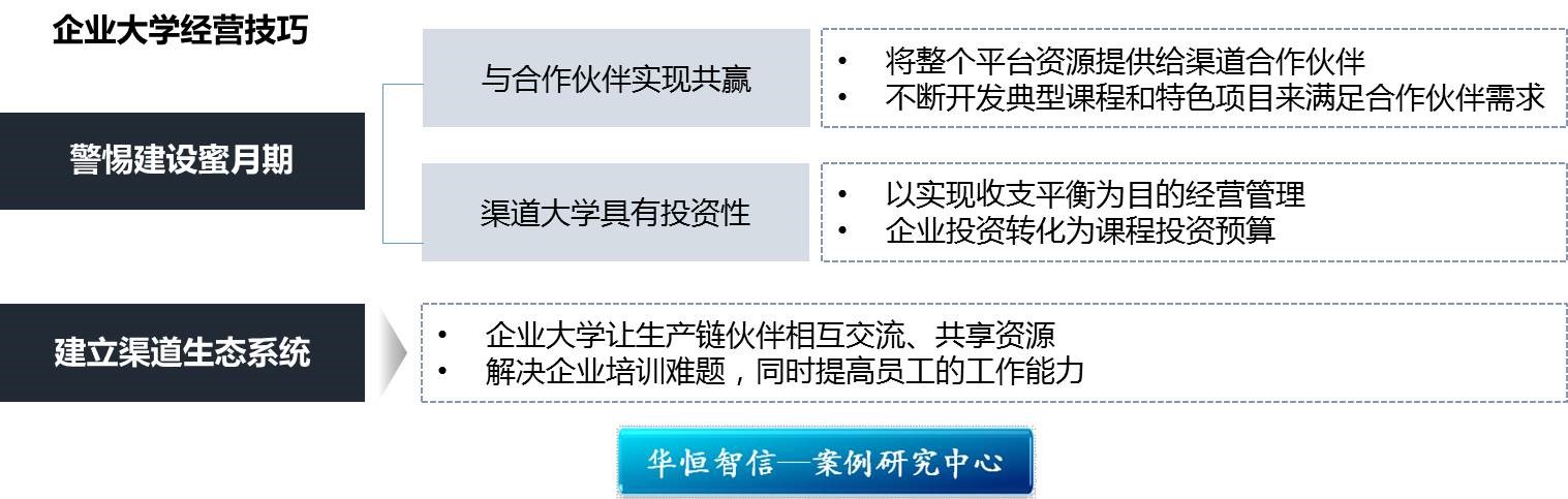 随着时代的发展,知识技能的快速更新,大学教授学生的知识、技能已经不能满足企业的需求。现代企业与走出“象牙塔”的现代大学为了走向“联姻”是历史必然的。企业大学是企业以实现企业战略为根本目的,打造的一种新的学习体制。华恒智信认为,创办并良好经营企业大学,不仅需要巨大的财力、物力、人力,还需要企业注意以下两个方面: