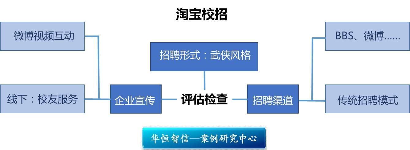 人才招聘的渠道有很多,常见的有现场招聘,网络招聘,传统的媒体广告、人才介绍机构、内部招聘、校园招聘等,其中校园招聘是吸收引进可塑之才的重要招聘渠道,淘宝通过还原武侠人物的方式,形成了具有武侠特色的校园招聘深入人心,它的成功之道对于如何开展校园招聘具有深刻的借鉴意义。
