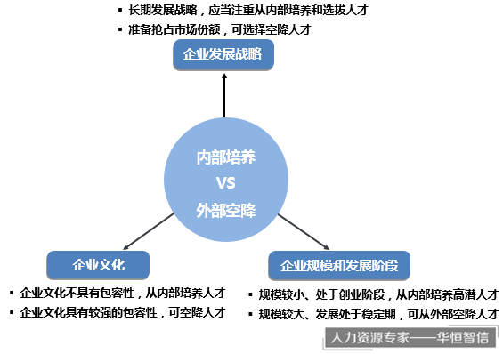 许多从外部空降人才但是最终失败的例子都可以归咎于企业文化。当企业文化不具有包容性时,空降人才通常会导致新员工与老员工之间的摩擦,最终造成企业的内耗,此时需要从内部培养人才。当企业文化具有较强的包容性和凝聚力时,可以选择从外部空降人才,使新老员工优势互补。