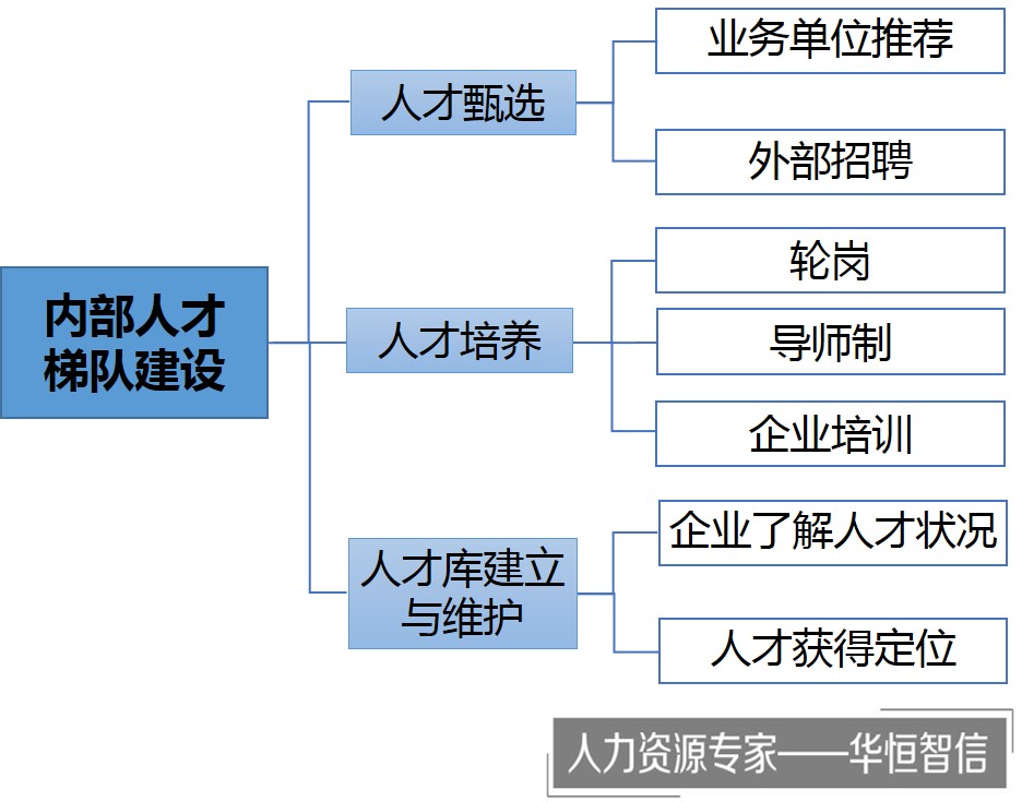 企业内部人才梯队建设的首要问题是确定好人才的来源。常见的有两种来源,一种是企业内部各业务单位负责人推荐,另一种则是外部储备干部的招聘。当确定人才初选池后,参照各人才胜任力标准,并采用合适的测评方法找出企业需要的人才队伍。