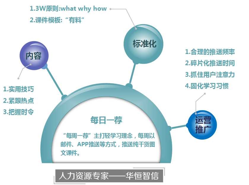 百度推出的培训软件“每周一荐”主打轻学习理念,致力于提升百度同学的通用技能和个人素养,有效拉高了员工培训平台的活跃度,降低了培训成本,收到了很好的培训效果。“每周一荐”培训软件弥补了传统培训方式的短板,让企业的培训更加有效。如果您也想同百度一样做到有效的培训,必不可少应学会建立有效的企业培训开发系统。关于如何建立有效的建立企业培训开发系统,华恒智信分析员为您提出三点建议: