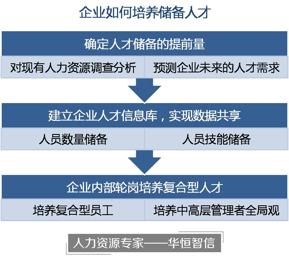 华恒智信认为,战略性的人才储备对于企业的长远发展非常重要。它从企业的发展目标出发, 对企业人才现状进行深入分析,明确企业人才的层次、数量、结构及其与环境的关系,通过储备人才,使企业在激烈的竞争中获得人才优势,从而带动企业发展。既然人才储备具有如此重要的作用,企业应该如何培养储备人才呢?华恒智信分析员为您解析。