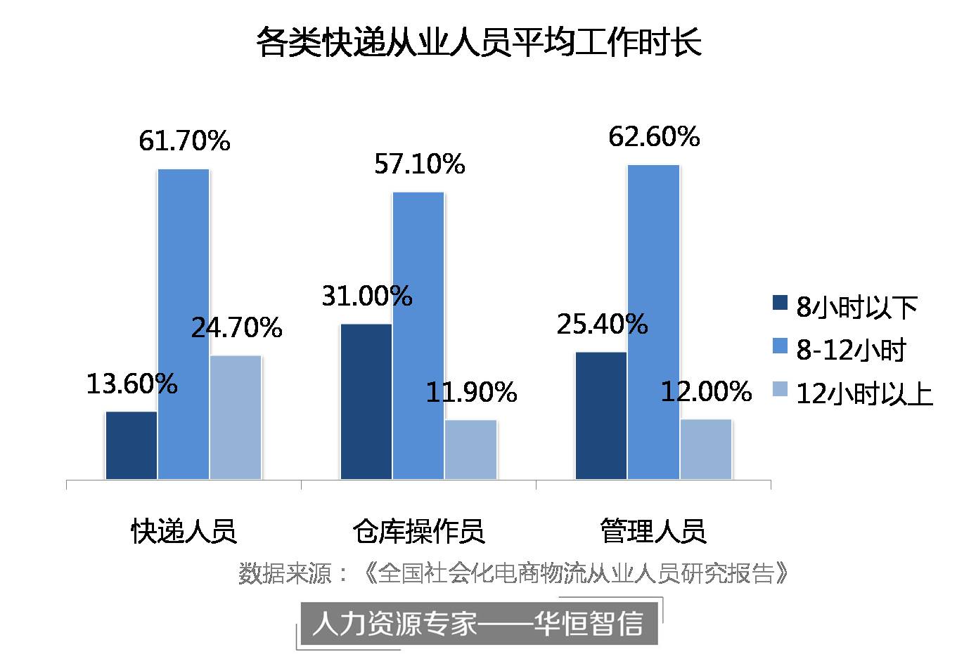 由北京交通大学和阿里巴巴的调研和物流部门联合进行的调查显示,大部分快递员每天工作8小时以上,每周工作7天,还有近四分之一的快递员每天工作12个小时以上,这项调查覆盖4万名快递员。