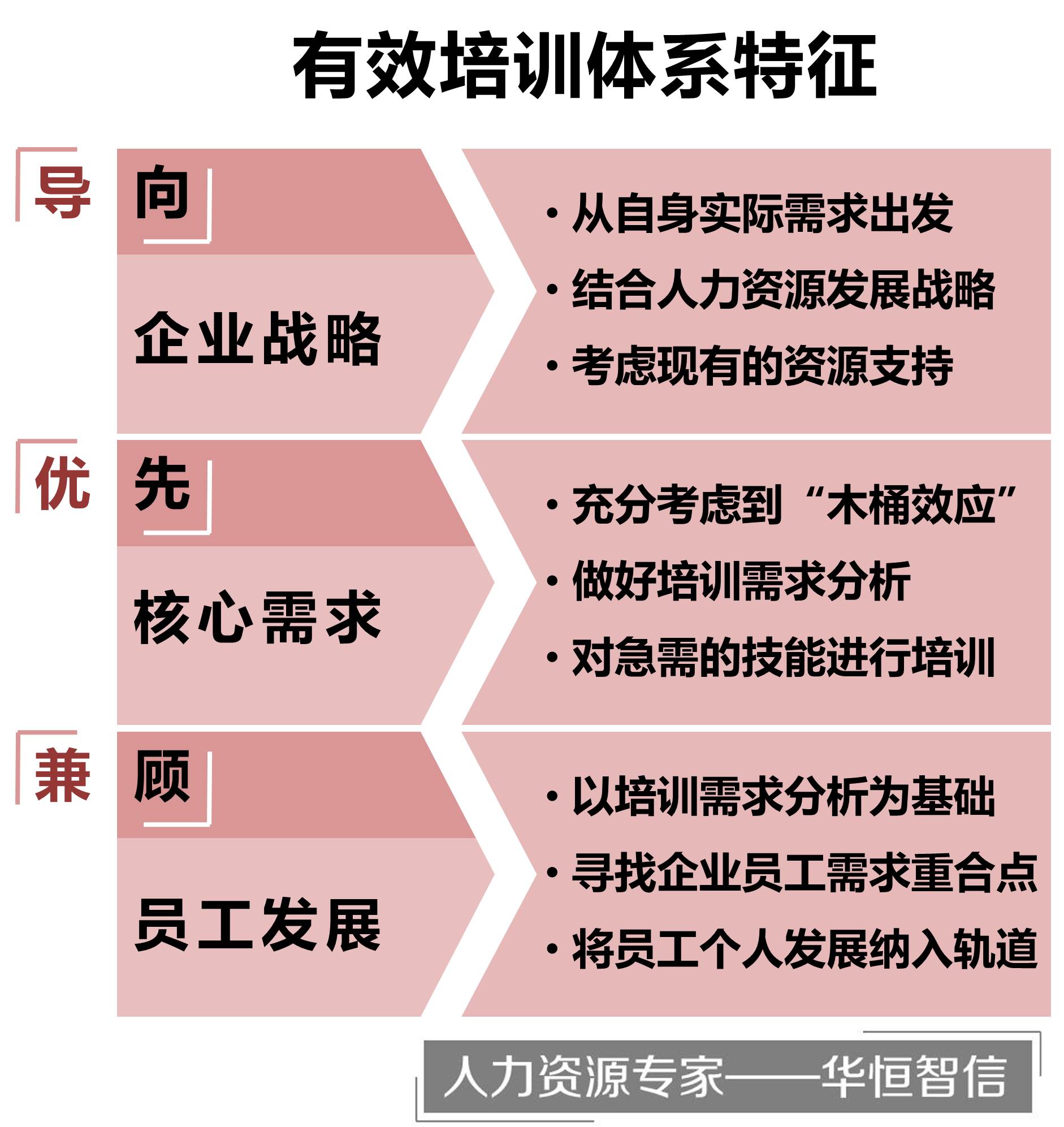 然而,在现实中,企业的培训实践却存在着很多不够完善的地方。在华恒智信人力资源专家看来,一个有效的培训体系至少应当具备以下特征: