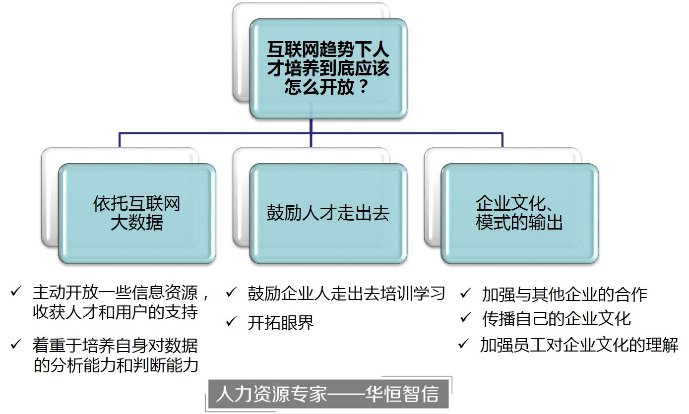 人才培养的愈加开放显示了互联网经济下各行各业彼此相连的关系和特点,开放的人才培养模式越来越被更多的企业所认可,但是依然有很多企业对此存在疑虑和不清楚,互联网趋势下人才培养到底应该怎么开放?华恒智信通过韩都衣舍的例子,寻找其中的特点和注意点。