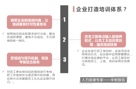 华恒智信认为可以从培训内容、培训方式、培训落实三方面入手: