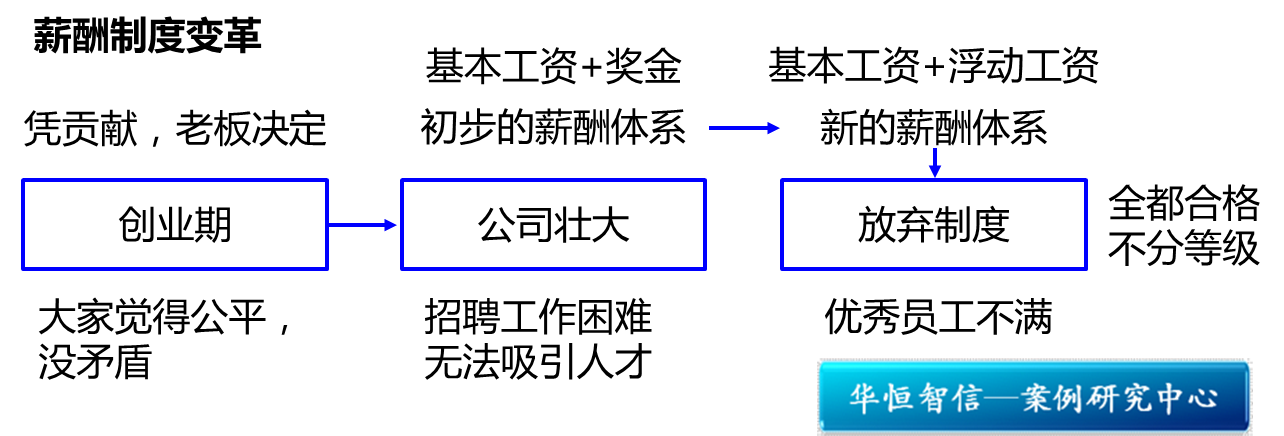 经历了这么一个过程,总结了经验和教训之后,公司领导认为,当时制订出基本工资+浮动工资的工资制度,正是在公司大量引进人才阶段,在特定时期也充分发挥了它的作用。但是随着公司逐渐步入正轨,大多数员工是需要正向激励的,于是仍然希望改为原有的奖金激励方式。但是任何好的激励制度都要建立在公司营利的基础上,不然不利于公司的长期发展。如果从公司的利润中额外抽出一部分资金作为奖金来源的话,无疑会减少公司的利润。如果公司不拿出额外资金作为奖金的来源,可能奖金方案根本无法实行,但是原有的工资结构中浮动工资部分完全变为员工的基本工资,无疑是无条件地给全体员工变相的长工资,也不行;如果将原有工资中的浮动工资全部拿出来作为奖金的来源,肯定会影响员工的士气,他们会理解为公司普降工资,这是个敏感的焦点,可不能轻易动啊。一个尖锐的问题摆在了人力资源部经理的面前……
