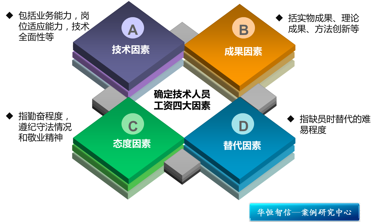 在谈判工资中,确定技术人员工资水平的依据是四大因素。一是技术因素,包括业务能力,岗位适应能力,技术全面性及承担重要复杂工作的能力及潜能等;二是成果因素,包括实物成果、理论成果、方法创新、工作质量、差错率等;三是态度因素,主要指勤奋程度,遵纪守法情况和敬业精神;四是替代因素,主要指缺员时替代的难易程度,如学历高低、专业紧缺度、特别技能和特殊需要。正是通过谈判,人才有了话语权,进而使人才价值的有偿转让更透明,更合理。