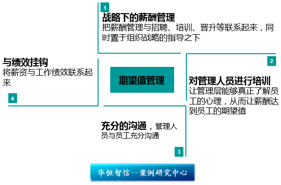 第四,与绩效挂钩。期望值管理的根基还在于员工的工作绩效,脱离了工作绩效的准确考核,期望值管理就不能充分发挥它的功效。期望值管理的最终落脚点是提高员工的工作绩效。
