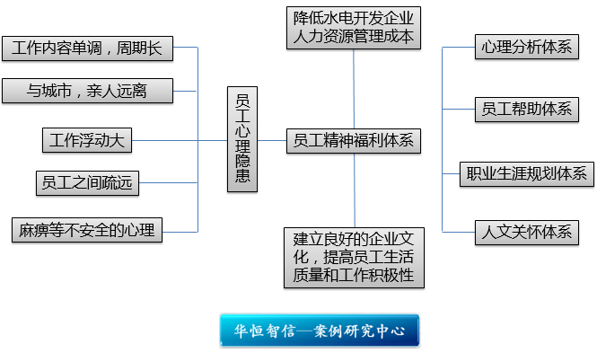 国有大型水电企业构建“员工精神福利体系”大致包括建立心理分析体系、员工帮助(EAP)体系、职业生涯规划体系、人文关怀体系等四个执行体系。
