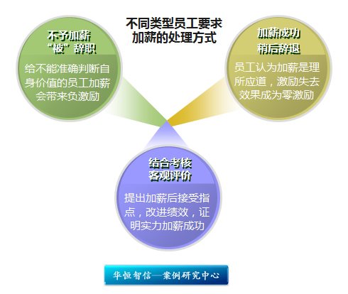 员工要求加薪有时是处于对自己水平过高估计,或者是不能准确判断自己的劳动力市场价值,此时多半公司已经支付此员工市场水平的薪酬,但是仍然不能满足员工。此时同意加薪请求其他同事会纷纷效法,争取本不应该得的利益。加薪不但没有让大家更努力地工作,反而起到了“负激励”的效果。