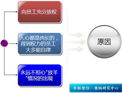 案例中的海底捞充分信任员工,向员工放权,提高了工作效率,取得了良好的成果。这也打破了餐饮业“一切权力在店长”的常规,是管理的一大创新。向员工放权是提高组织运作效率的重要因素之一,但华恒智信认为,企业在授权应该注意以下两点: