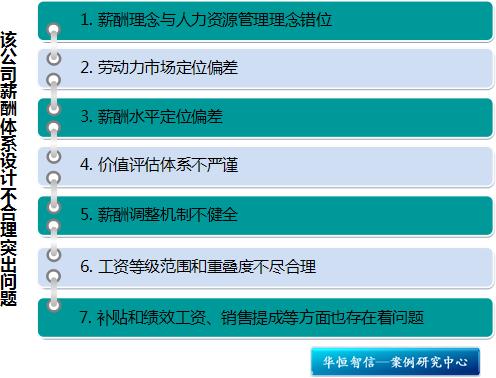 以上仅仅是H公司在薪酬体系方面存在的一些主要问题,除此之外,补贴和福利项目的设计、绩效工资、奖金、销售提成等方面也不同程度的存在着各种各样的问题。