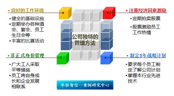 当然,詹姆士也深深知道,要长期地在人才竞争日趋激烈的环境下维持这样一批倾心工作的员工队伍确定不是一件容易的事情。公司在飞速地发展,而随着公司的扩大,它的生产增长速度相应放慢,也会出现一个更为正式而庞大的管理机构。在这种情况下,又应如何更有效地激励员工呢?这自然是他和公司的管理人员所共同关心的问题。