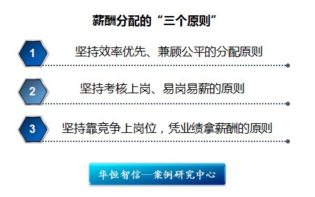 1、坚持效率优先、兼顾公平的分配原则。在管理层面实行年薪制,与组织机构改革相配套,因事设岗,因岗配人;以岗定薪,一岗一薪;薪随岗移,岗变薪动;上岗则有,下岗则无。破除平均主义和论资排辈的思想观念,不以学历、职称、资历、资格、工龄论长短,而以工作业绩、经济效益论英雄。