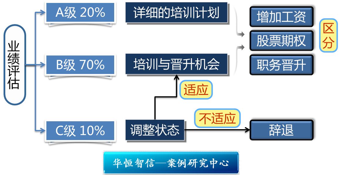 每年,GE都要对员工进行业绩评估,通过评估,将员工划分为A、B、C三级。