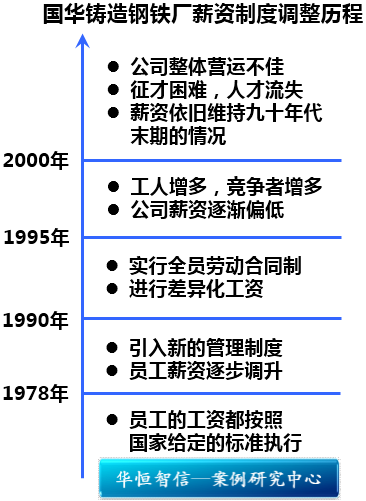 九十年代初期,国家开始破除有关传统做法,按照劳动法,实行全员劳动合同制,宏观配套改革,向现代企业制度下的人力资源管理转变。公司因势利导,也开始进行差异化工资,除了每年提升工资水平外,也逐步进行差异化工资,加强人才的竞争机制。