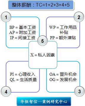 整体薪酬体系又称为自助餐式的薪酬方案,是在公司和雇员充分沟通的基础上来确定雇员的薪酬形式,埃德•劳勒认为:“整体薪酬体制不仅仅是指经营赢利分享、工资以技能为基础和雇员的参与,而是通过薪酬和福利(即现金和非现金手段),帮助建立一种公司与雇员之间的伙伴关系,将公司的经济效益与各位员工直接挂钩”。它主要的特点是:多样性、定制化和动态性,最本质的理念是从雇主为核心转变为雇员为中心,雇员从一个薪水的接收人转变为薪水的客户。作为客户,就有选择的权利。由于雇员的需求是多样的、动态的,所以雇员的报酬也应该突破单一的现金形式。特鲁普曼将薪酬细分为5大类10种成分,并以薪酬等式的形式表现出来: