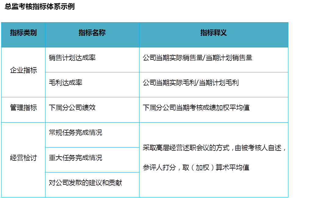 由上表可见,大区总监的绩效考核指标由三部分构成:
