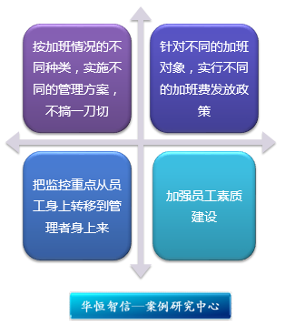 第一,按加班情况的不同种类,实施不同的管理方案,不搞一刀切。