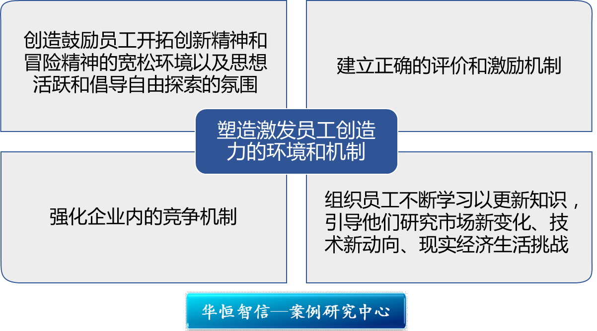 激发全体员工的创造力,是开发人力资源的最高层次的目标。作为企业,需要塑造激发员工创造力的环境和机制: