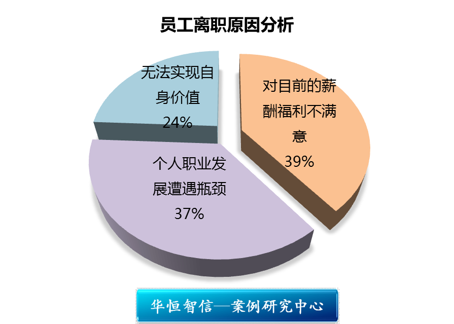 在人才流动日益频繁的今天,员工跳槽本应是是司空见惯的事。如果说个别员工的出走,企业尚觉无关痛痒的话,那么一个团队中的核心人员的出走,任何企业都不可能无动于衷,因为它产生的后果对企业有可能是致命的打击。由某人才招聘网站组织的一次调查统计显示,在:“以下哪种情况下您会跳槽”这一问题(多选)中,回答排在前三位的分别是:1、对目前的薪酬福利不满意(23.43%)2、个人职业发展遭遇瓶颈(21.87%)3、企业理念与个人不和,无法实现自身价值(14.51%)。