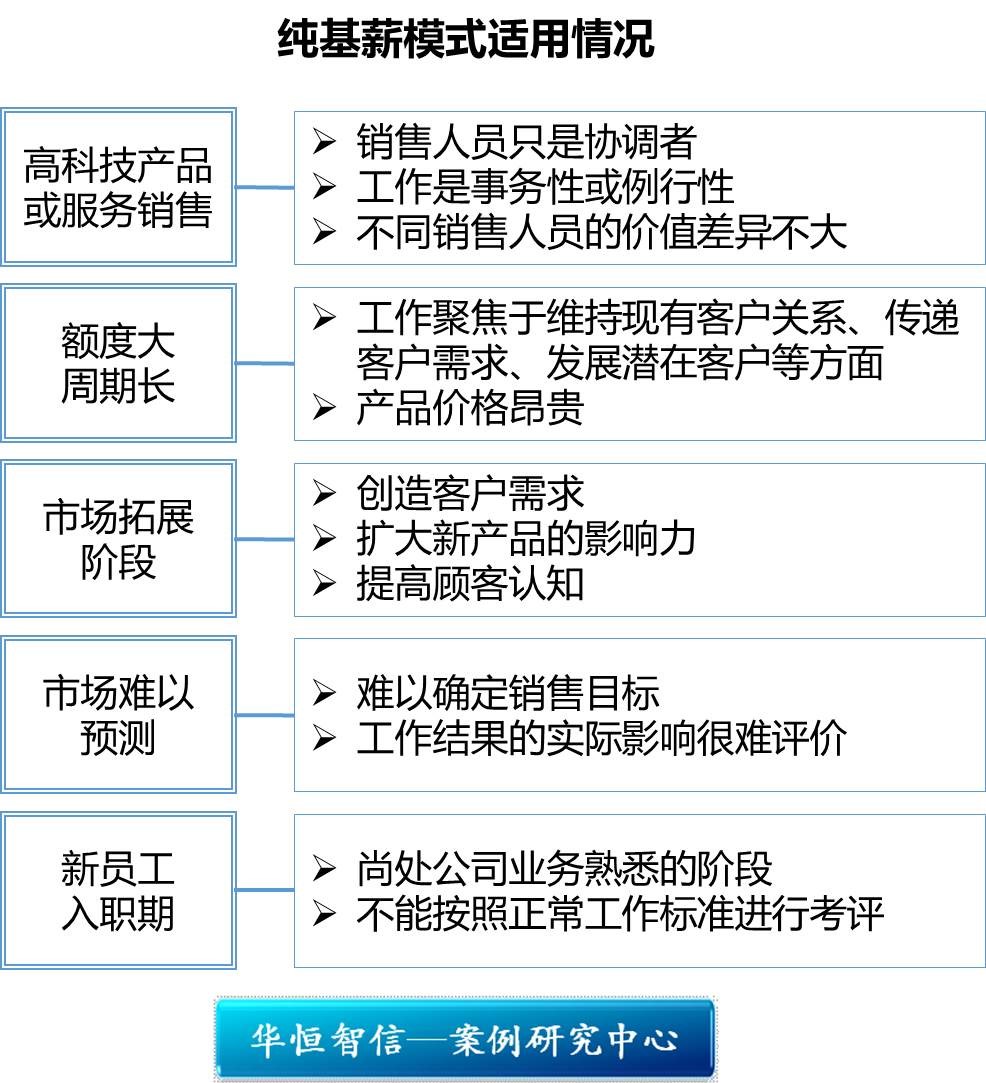 四是适用于市场多变而难以预测的情况。这时,由于市场多变,难以确定销售目标,销售人员的努力程度对工作结果的实际影响很难评价,采用纯基薪模式则相对合理。