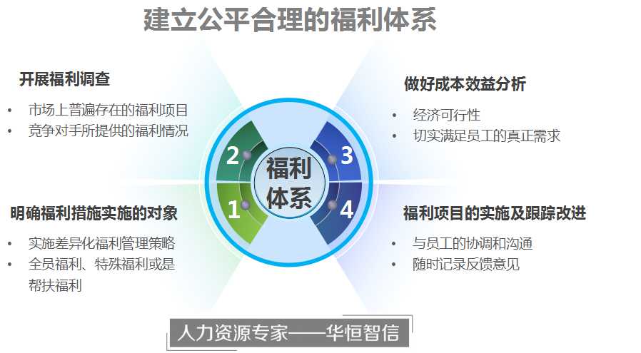 对于企业来说,除了公共福利,如养老金,还有各种其他类型的福利。面对日益多元化的福利类型,福利的公平分配与发放成为HR工作的难点所在。那么企业为了更好的激励员工,应该如何建立公平合理的福利体系呢?华恒智信为大家提出四点意见: