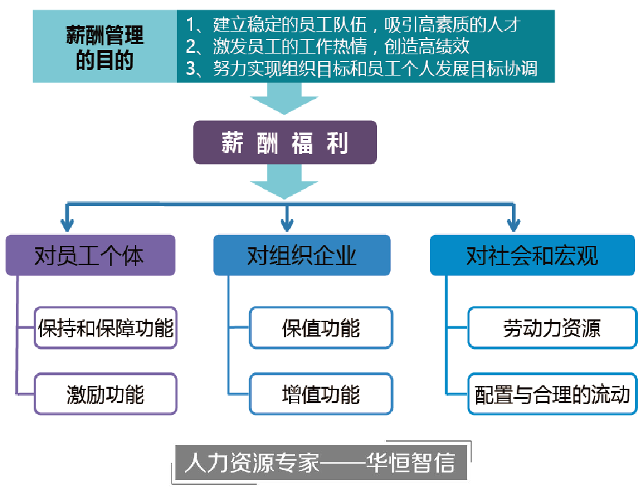 华恒智信认为这三个目标的实现需要结合实际情况,分别采用三个手段。外在竞争性需要通过外部薪酬调查来实现。简单来说,就是调查同业人员的收入情况以及如何发放。内在公平性如何是通过岗位评价(职务评估)的手段来实现。战略文化特性主要通过企业问题诊断与分析后,由华恒智信提出战略的薪酬政策建议,并由企业确认。经过实践研究和大量调研发现,企业薪酬设计的效果如何,与上述三个因素密切相关,但作用有所不同。企业自身的战略薪酬政策影响最大,其次是内在公平性,会影响员工的工作积极性,再次才是薪酬收入的竞争性要求。因此,华恒智信在为企业设计薪酬体系中投入的重点和分析也有所不同,以适应企业自身特色。