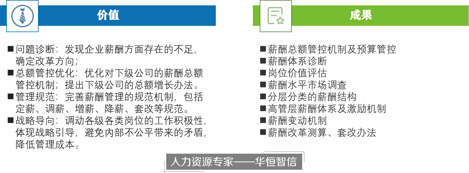 华恒智信认为,国有企业的薪酬机制改革包含两个方面的内涵:工资总额决定机制、薪酬内部分配机制。