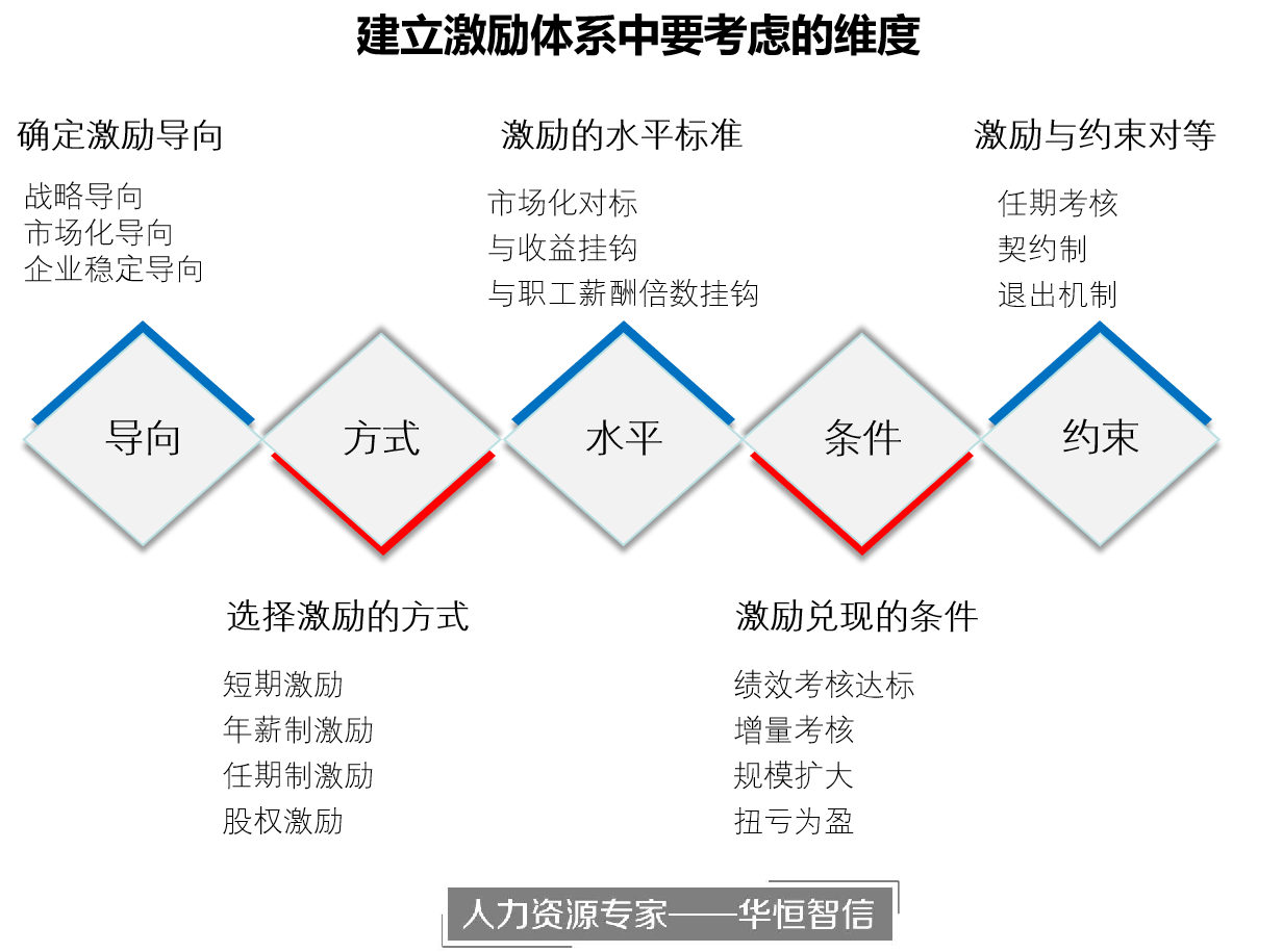 华恒智信认为,根据赫茨伯格的双因素理论,仅仅开展薪酬改革、提高短期收入等,无法带来长期的激励效果,反而会给企业造成较大负担。因此建立中长期结合的激励体系,对人员积极性的调动,特别是对核心人才的保留和激励效果,就显得尤为必要。在三项制度改革中,分配改革提出要强化正向激励导向,仅仅依靠薪酬改革这样的短期激励,容易带来短视效果、而且短期内很难完全实现,国有企业需要通过丰富激励手段,来补足短板,促进实现“收入能增能减”的改革要求。